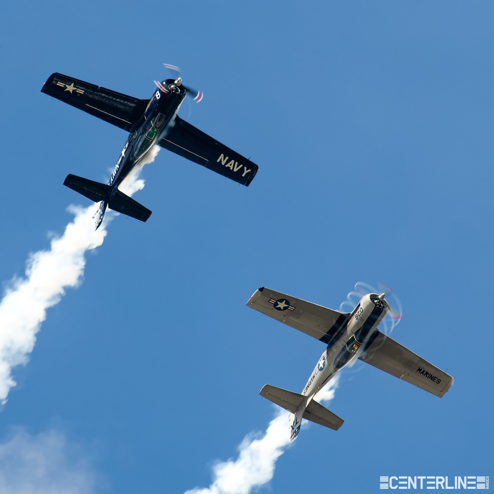Warbird review flybys by the T6, TBM Avenger and the T33 Shooting Star